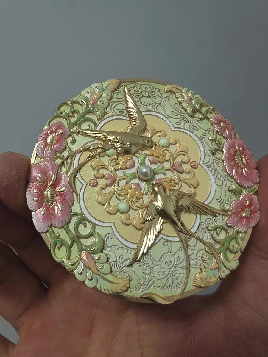 거울 뒷면에는 정교한 3D 부조 조각 🐦이 새겨져 있습니다. 종달새와 서로 얽힌 꽃무늬 🌸가 생생하게 살아 숨 쉬며, 모든 디테일은 숙련된 장인의 손길로 섬세하게 제작되었습니다. 손가락으로 만져보면 섬세하고 물결치는 질감이 느껴집니다. 마치 손에 잡힐 듯 아름다운 미니어처 조각품 🗿을 만나보세요.