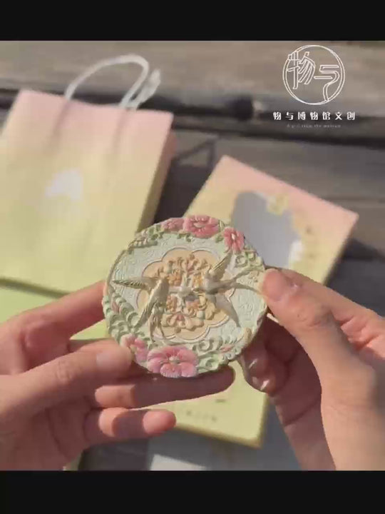 Xi'an Museum Handheld Skylark Mirror - Vintage Travel Makeup Mirror with Leather Case, HD Reflection - Eastern Gifts